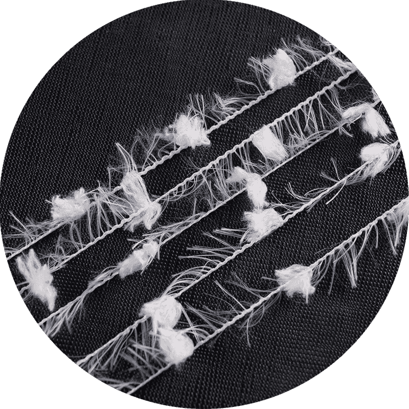 Jacquard Weave: การใช้เครื่องทอคอมพิวเตอร์ การทอผ้า jacquard ช่วยให้เกิดลวดลายและการออกแบบที่สลับซับซ้อน เส้นด้ายขนนกสามารถเพิ่มความลึกและมิติให้กับลวดลายเหล่านี้ ทำให้เหมาะสำหรับสิ่งทอตกแต่ง